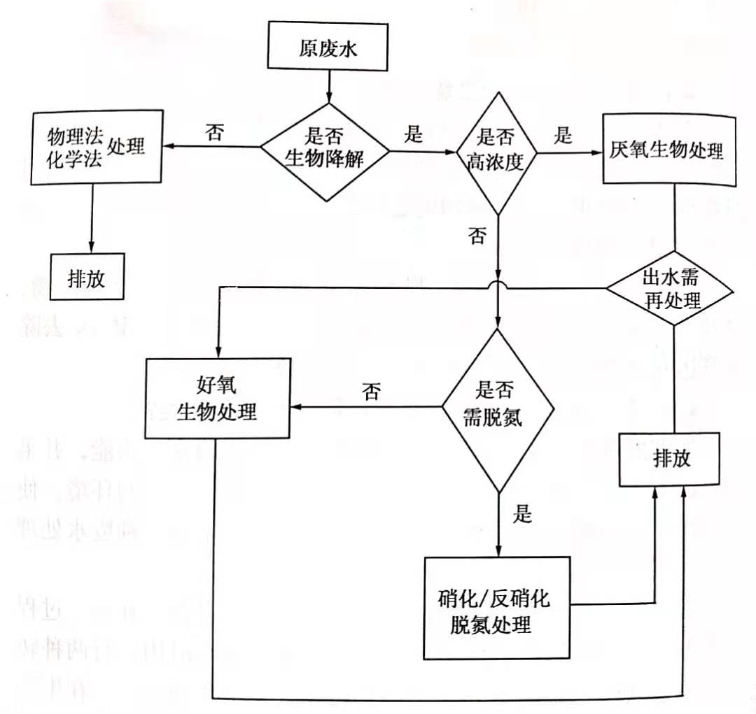 污水经一级处理后,用生物处理法继续去除其中胶体状和溶解性有机物及植物性营养物,将污水中各种复杂有机物氧化分解为简单物质的过程,称为二级生物处理。当含有有机物的工业废水拟选用生物法处理时,可选择下图所述的程序。