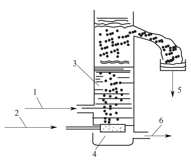 曝气气浮一般采用鼓风机将空气直接送至气浮池充气器,形成细小气泡进入污水中。充气器一般用扩散板、穿孔板或微孔管等,曝气压力在1kg/cm2,空气量2-3m3/m3水。扩散装置的微孔不宜过小,否则易于堵塞;而微孔板孔径过大,必须投加表面活性剂,方可形成可利用的微小气泡,从而导致该种方法使用受到限制。近年研制、开发的弹性膜微孔曝气器克服了扩散装置微孔易堵或孔径大等缺点。扩散板曝气气浮示意图见下图。