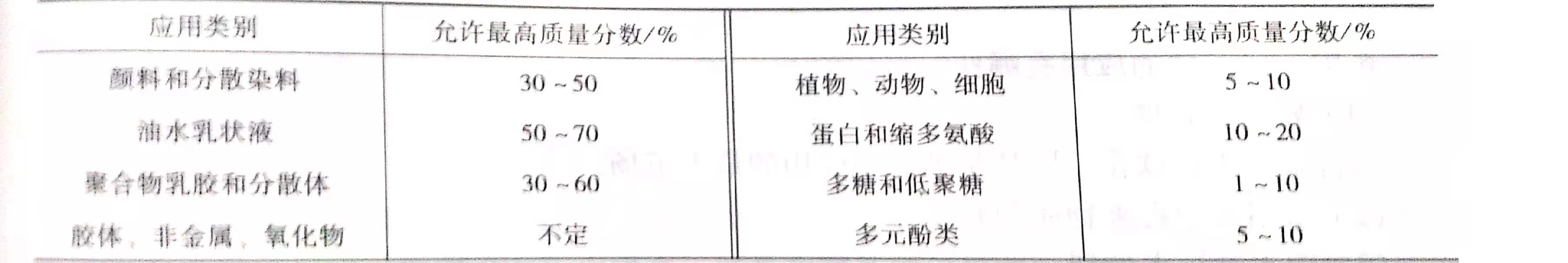 (6)随着超滤过程的进行,料液的浓度在增高,边界层厚度扩大,对超滤极为不利,因此对超滤过程主体液流的浓度应有一个限制,即最高允许浓度。不同料液超滤时的最高允许浓度见下表。